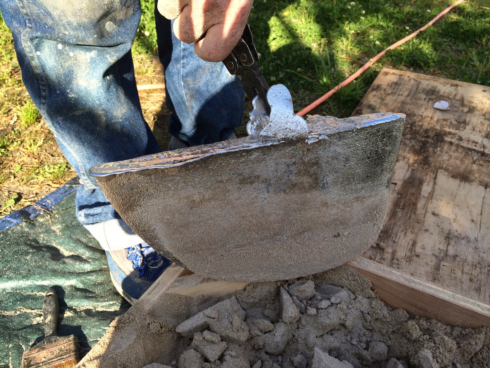There was more sand texture at the bottom of the pour when the lead was hottest and swirling around the most but overall no major problems with either pour. The sand was very hot after absorbing all the heat from the lead. After casting the green can be reused over and over. The sand is put through a sieve and a little bit of water added back.